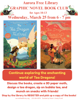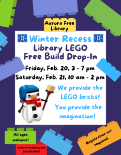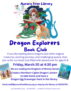 For more information about programs and events at the Aurora Free Library, contact Sandra Groth, Librarian, at the library at (315) 364-8074.
