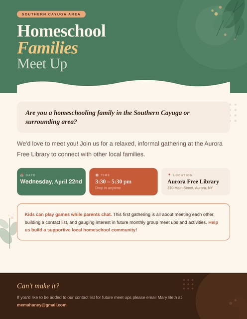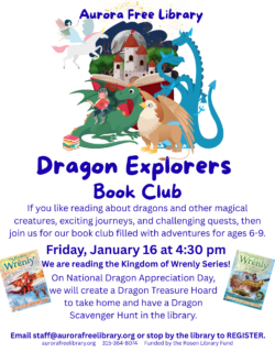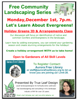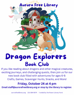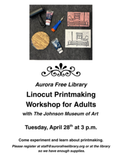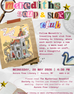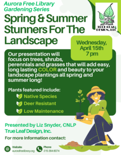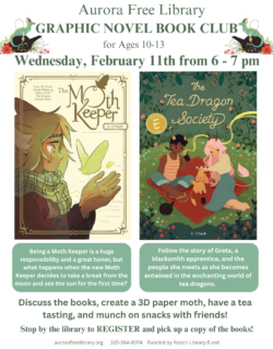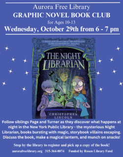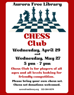 For more information about programs and events at the Aurora Free Library, contact Sandra Groth, Librarian, at the library at (315) 364-8074.