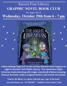 The Graphic Novel Book Club for ages 10-13 will meet on Wednesday, October 29 from 6-7 PM.