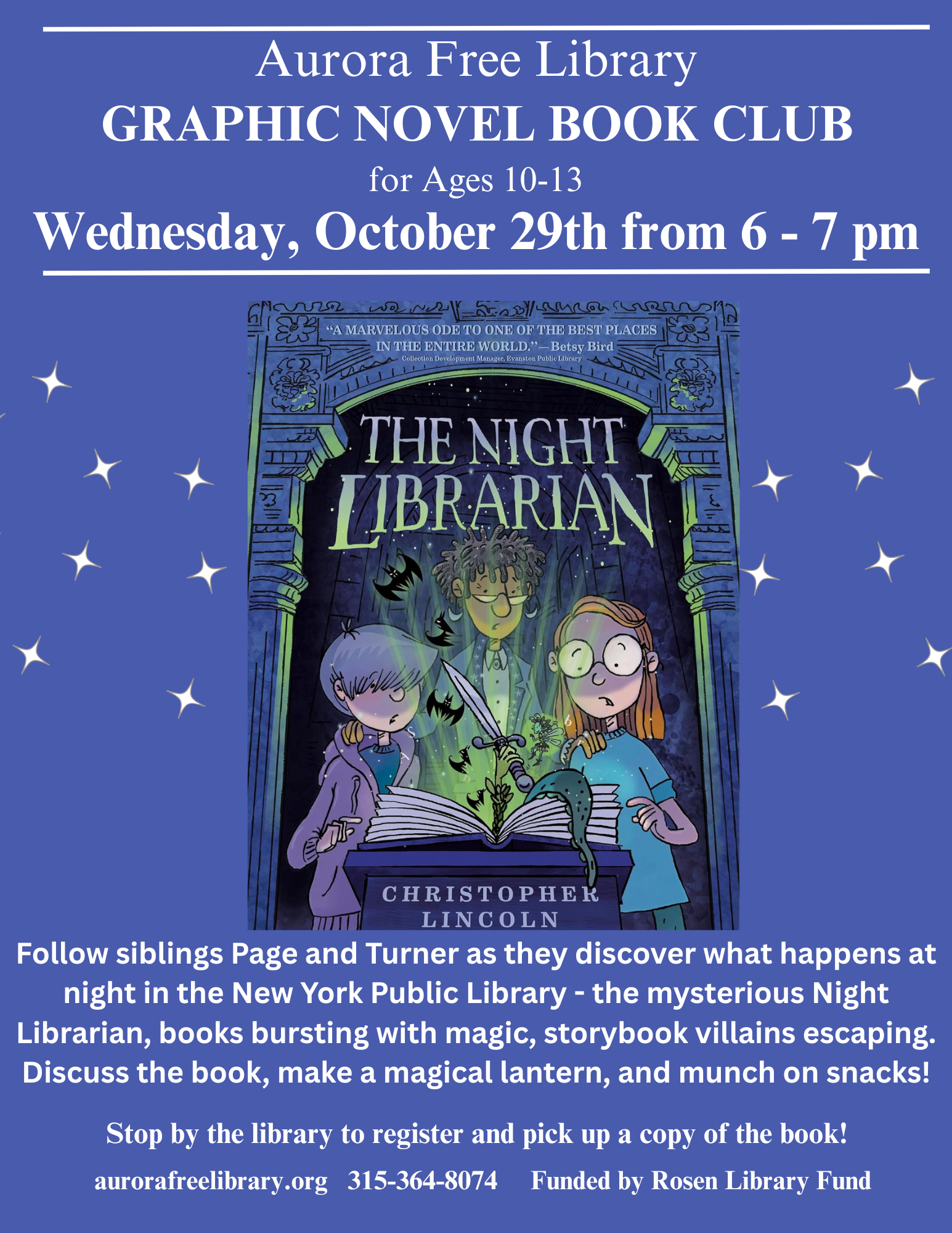 Stop by the Library to register and pick up a copy of the book, The Night Librarian by Christopher Lincoln!