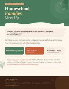 Are you a homeschooling family in the Southern Cayuga or surrounding area? We’d love to meet you!