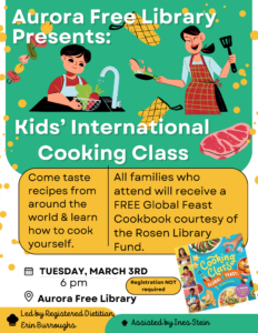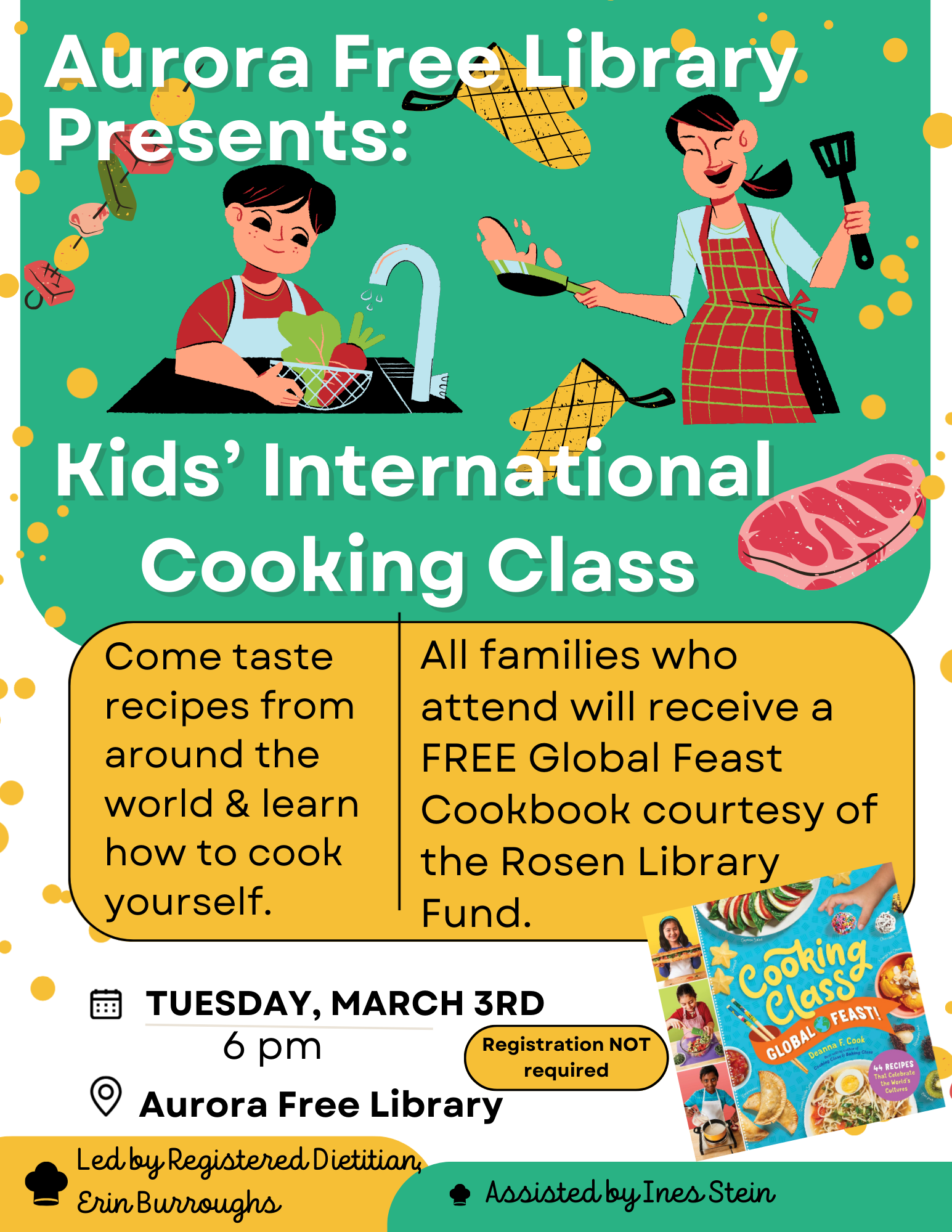 All families who attend will receive a FREE Global Feast Cookbook courtesy of the Rosen Library Fund.