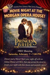 Inconceivable! Its time for another Movie Night at the Morgan Opera House! Join us for a free viewing of the classic and highly quotable, The Princess Bride!